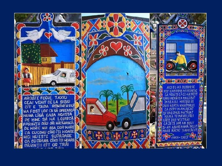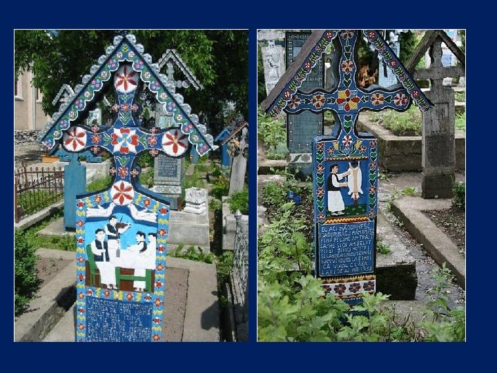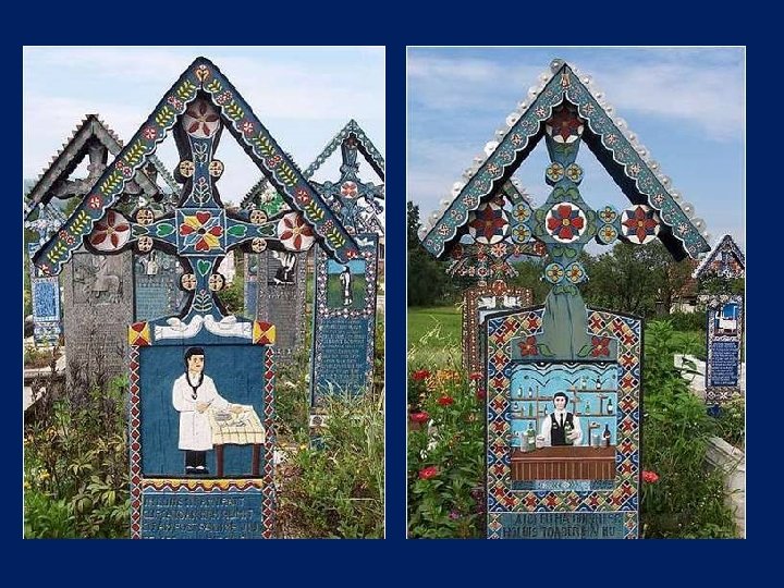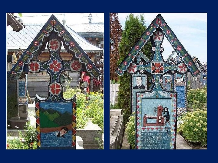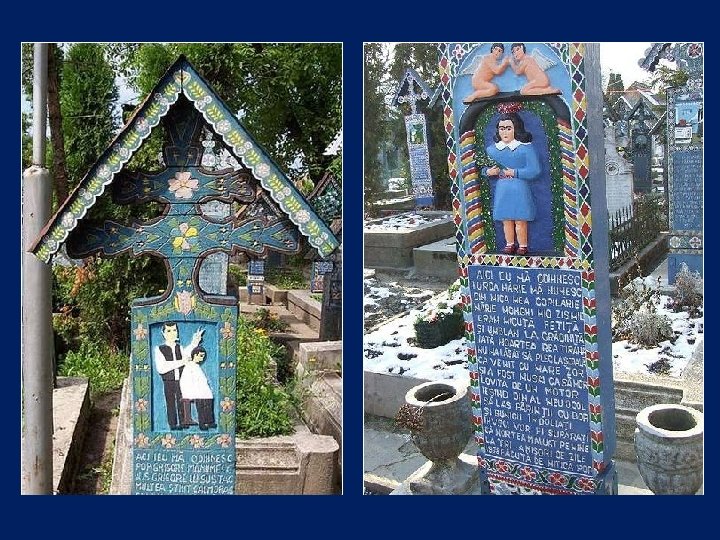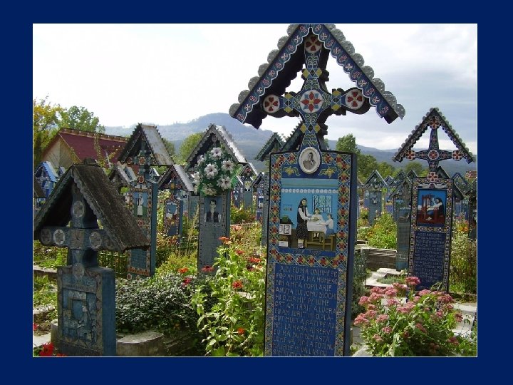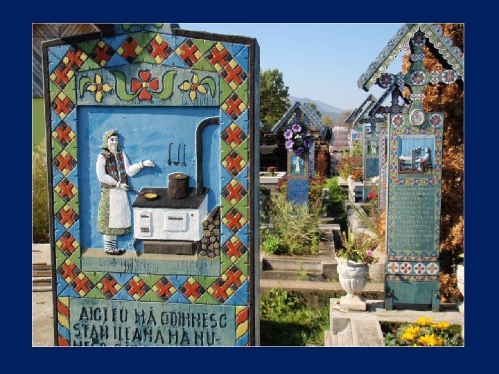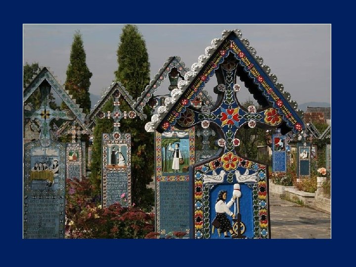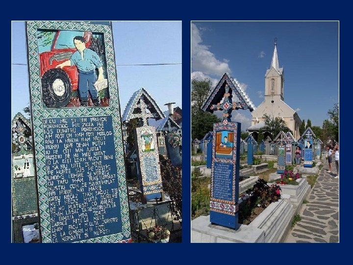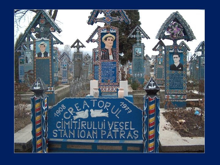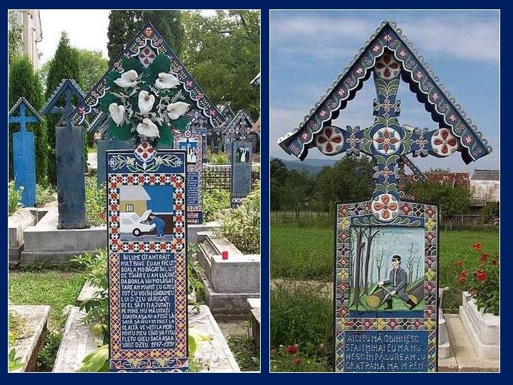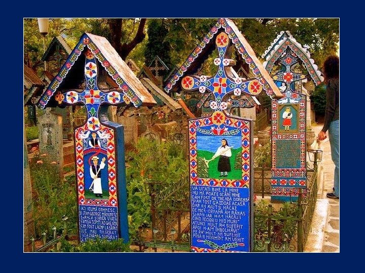 Ce cimetière, situé en Sapantza, en Roumanie près de la frontière avec l'Ukraine, est unique dans le monde. Son nom original est : Cimitirul Vesel qui signifie : Cimetière Heureux.