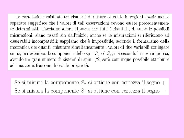 Dunque l’interpretazione statistica di Einstein è incompatibile con il formalismo quantistico: dato un sistema individuale, non è possibile assegnare valori simultaneamente definiti a tutte le sue osservabili in modo indipendente da ciò che viene misurato.