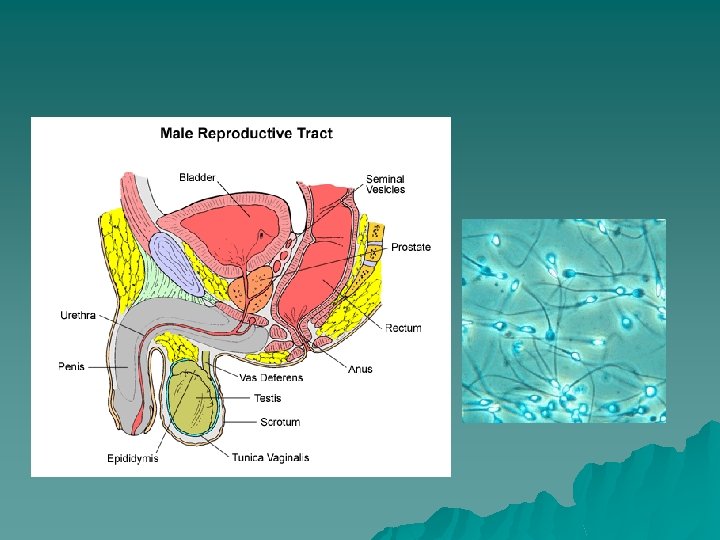 Sytème Reproducteur de l’Homme Le système reproducteur masculin est destiné à produire le sperme viable autant que possible afin d'assurer la fécondation et à la propagation de l'espèce. Il doit y avoir un très grand nombre de spermatozoïdes, car très peu se rendent assez près de l'ovule à féconder. 350 000 500 000 spermatozoïdes sont produits dans les testicules (situés dans le scrotum). Ils sont stockés dans des tubes enroulés appelés épididyme jusqu'à ce qu'ils soient nécessaires, puis ils se déplacent vers le bas du canal déférent où ils se mélangent avec du fluide de la prostate et les vésicules séminales à partir du sperme. Ce mélange fluide permet aux spermatozoïdes de nager plus facile. Spermatozoïdes quittent le corps par l'urètre, qui est également utilisé pour l'élimination de l'urine. Soupape de muscle empêche les deux liquides de se mélanger.