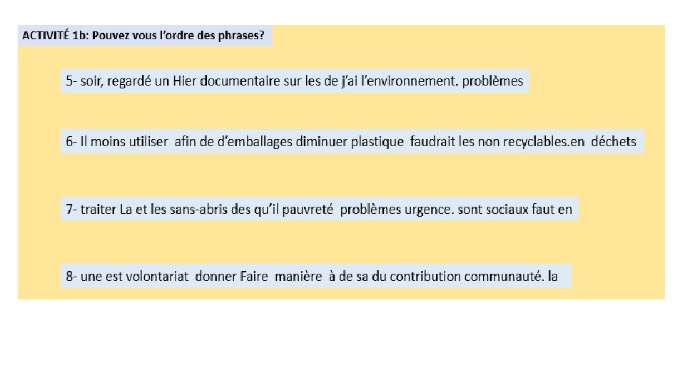 Le Francais des jeunes Samedi 07. 11 L’unite est axée sur les jeunes et les institutions.