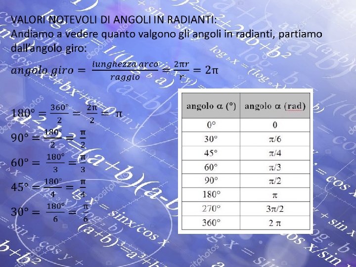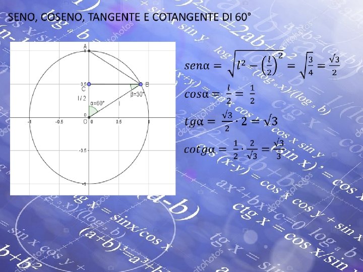 Seno, coseno, tangente e cotangente di 30°, 45° e 60° •