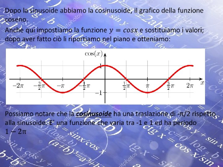 La Funzione Coseno Ricorda che le funzioni goniometriche non hanno unità di misura, sono numeri puri.