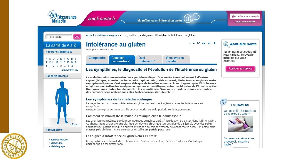 INTOLÉRANCE AU GLUTEN ou MALADIE COELIAQUE