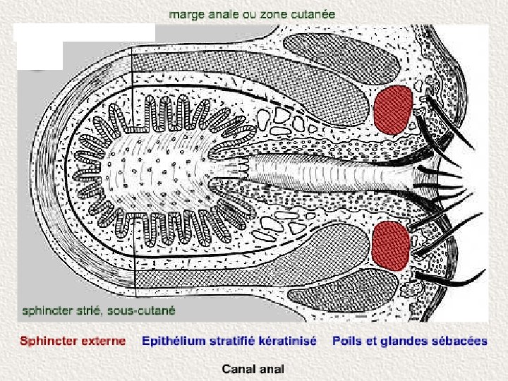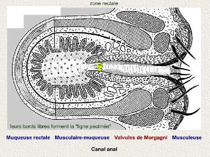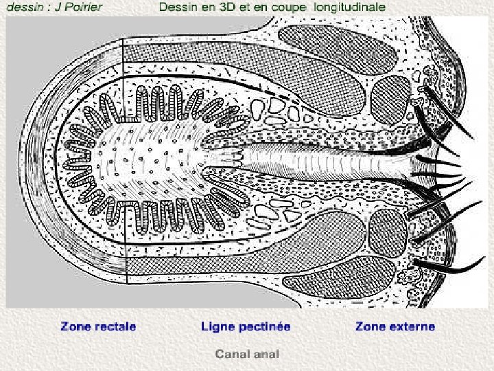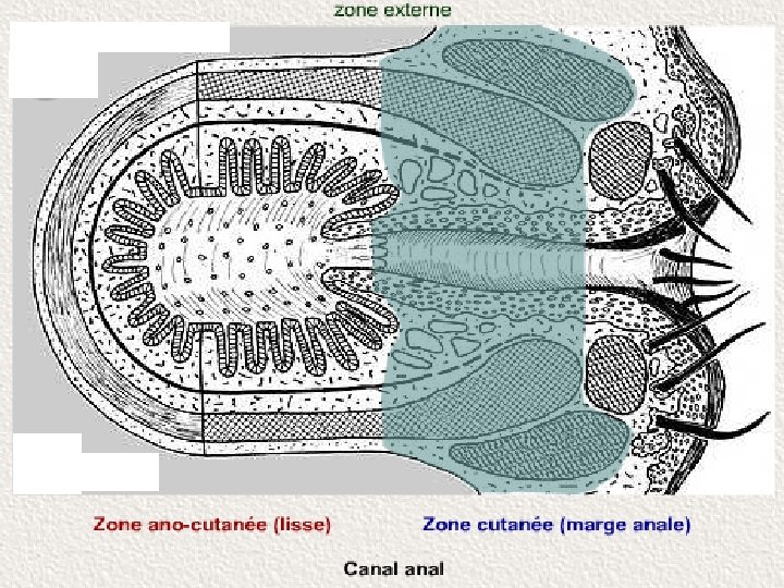 Le canal Marque l’extrémité distale du tube digestif. � Il est divisé en trois zones : � �La zona anorectale �La zone anocutanée �La zone cutanée