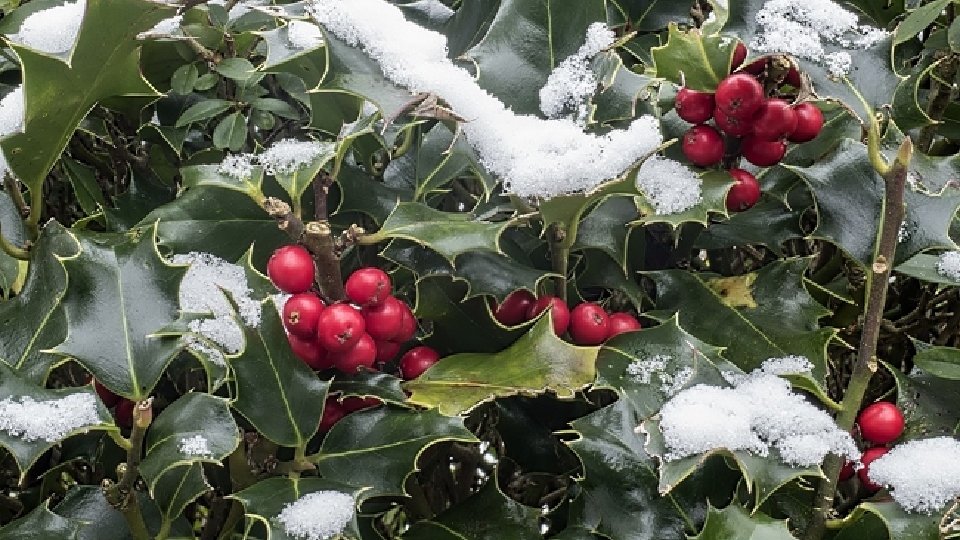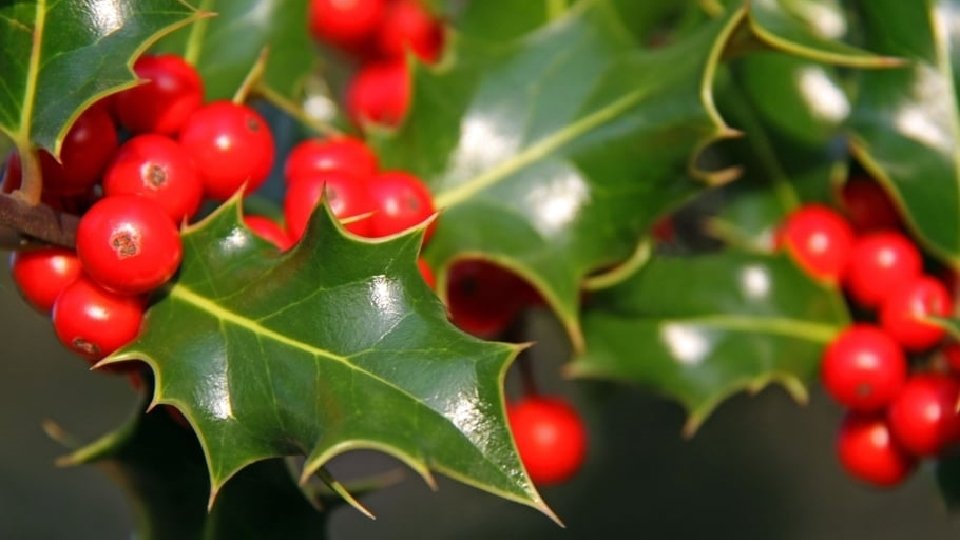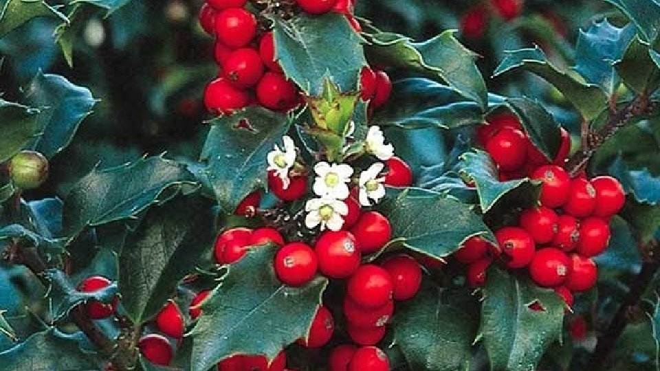 Je suis une plante Ornementale de l'hiver Mon feuillage est brillant, piquant Et mes fruits, rouges.