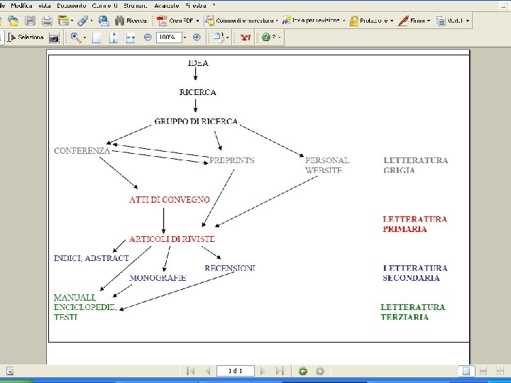 CREARE INFORMAZIONI SCIENTIFICHE Il processo di creazione di informazioni scientifiche nasce quando i ricercatori, prendendo spunto da libri o da articoli, elaborano un percorso di ricerca. Le loro idee sono poi spesso sviluppate, e talvolta confermate, e confrontate con altri ricercatori. I ricercatori infatti condividono le loro scoperte in maniera informale , via mail o telefono, oppure attraverso vere e proprie conferenze. Nell’eventualità che la scoperta sia valida, i ricercatori sono pronti a divulgarla e a pubblicarla nelle fonti primarie.