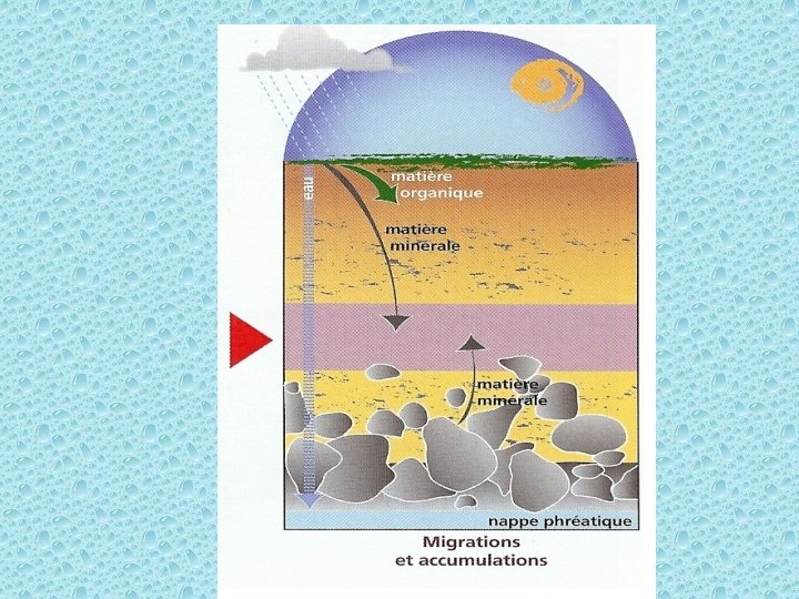 • Le sol est ainsi vidé de ses éléments nutritifs si importants pour nos cultures. • Le lessivage à surtout lieu en hiver (de novembre a mars ) lorsque les bactéries sont en dormance , que les plantes sont peu présentes et les échanges chimiques sont rendus difficiles par le froid.