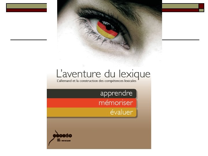 Contenu de cet ouvrage o Ce qu’il n’est pas n n n o Pas une compilation lexicale Pas un document officiel ni des IO dissimulées Pas non plus le point sur les avancées des neurosciences Ce qu’il veut être n n n L’analyse d’un sentiment d’échec collectif Un outil de réflexion sur les pratiques d’enseignement et d’apprentissage du lexique (EAL) dans les classes d’allemand ( et de langues vivantes ? ) Un ensemble de propositions et de préconisations pour modifier les pratiques de classe afin de replacer la préoccupation du lexique au cœur des actes pédagogiques majeurs