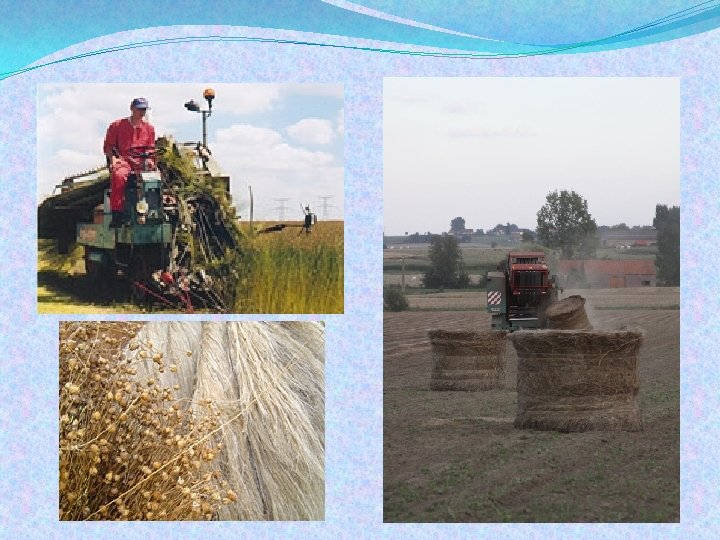 Quand le rouissage est jugé optimum, le lin est ramassé en grosses balles rondes. Le lin est ensuite teillé, la fibre est séparée de la paille et des poussières. Puis remis en balles pour souvent être expédié.
