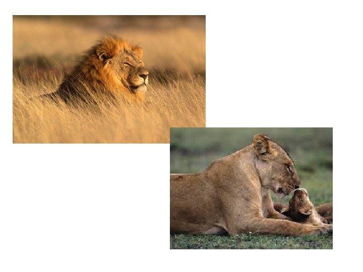 Caractéristiques • Le lion est une espèce de mammifère carnivore de la famille des félidés. • La femelle du lion est la lionne , son petit est le lionceau. • Période de gestation : 110 jours • Durée de vie : 10 à 14 ans • Poids et taille du mâle : 190 kg - 1, 2 m • Poids et taille de la femelle : 130 kg – 1, 1 m