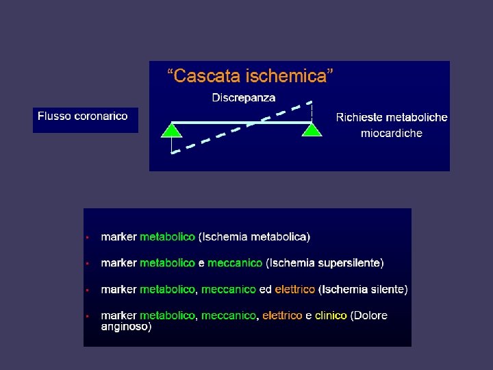 L’ischemia miocardica è il risultato dello squilibrio tra domanda di O 2 da parte del tessuto miocardico ed offerta dello stesso attraverso il circolo coronarico. DOMANDA DI O 2 OFFERTA DI O 2