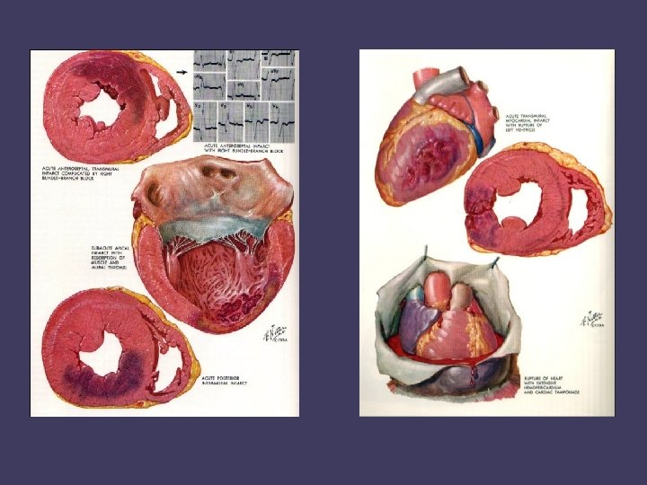 § INSUFFICIENZA CARDIACA SINISTRA: seconda causa di morte (20% dei pazienti) conseguenti: • stasi ed edema polmonare • shock cardiogeno (10% dei casi) § COMPLICANZE IN CASO DI NECROSI ESTESA: • rottura del cuore con tamponamento pericardico • rottura del setto inter-ventricolare • necrosi/rottura dei muscoli papillari con insufficienza mitralica acuta