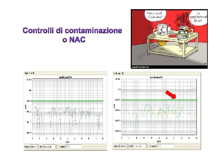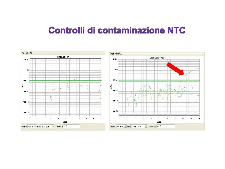 10 1000000 Slope: (-3, 2; -3, 6) Y-intercetta: 41 -42 ± 1 R 2 > 0, 98 Intercetta: limite teorico di determinazione della reazione, o il valore di CT aspettato per il più basso numero di copie del templato bersaglio ad essere amplificato, determinato sull’asse delle X. Slope: indica l’efficienza della reazione ovvero esprime la differenza di Ct che determina il raddoppio di un log del templato