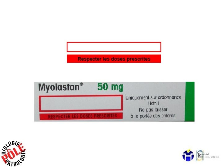 Médicaments réservés à l'usage hospitalier Prescription par un médecin exerçant dans un établissements de santé, de dialyse ou spécialisé dans les soins aux toxicomanes. Exigence éventuelle de compétences particulières La dispensation se fait par la pharmacie de l’établissement (hôpital) �� Liste des médicaments rétrocédables Ex : Temodal* (indication : glioblastome multiforme) LISTE I AMM Réservé à l'usage hospitalier.