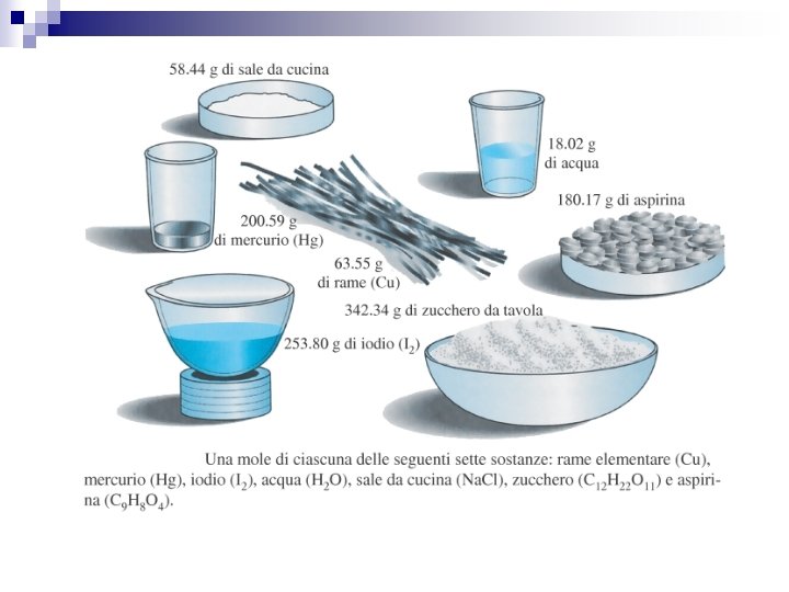 La Mole (mol) ü La mole è l’ammontare di sostanza che contiene tante particelle elementari quanti sono gli atomi dell’isotopo del carbonio 12 (12 C) in 12 grammi Numero di Avogadro (N) ü Il numero di particelle elementari contenute in una mole sono 6, 022136 x 1023
