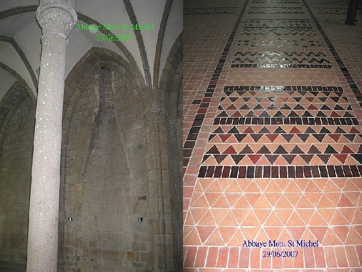 Le mur occidental s’ouvre sur trois larges baies avec vue sur la mer. À l’origine, ce passage devait permettre l’accès vers une autre salle (la salle capitulaire) qui ne fut jamais construite. L’abbaye gothique, communément appelée la Merveille, est construite au nord de l’église abbatiale au début du XIIIe siècle. Elle est constituée de deux corps de bâtiments accolés l’un à l’autre. Toujours à cause des contraintes topographiques liées au Mont, cet ensemble est édifié sur trois niveaux, avec des salles de plus en plus belles, légères et abouties au fur et à mesure de l’ascension. Le premier niveau comprend l’aumônerie, le cellier. À l’étage supérieur se trouvent la salle des hôtes, la salle des chevaliers. Enfin, le dernier niveau est composé du réfectoire et du cloître, magnifique jardin suspendu avec délicatesse entre le ciel et la mer. A l’extérieur, cet ensemble à flanc de rocher est soutenu par de puissants contreforts situés au nord.