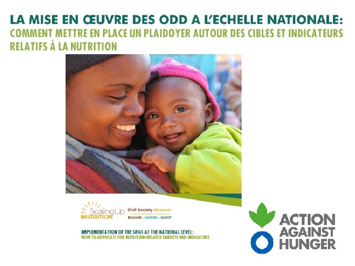 Quelles pistes d’action pour les OSC ? • Toolkit pour le plaidoyer sur l’ODD Nutrition : pistes d’action (Natalia Uribe Pando/ ACF) • Présentation d’initiatives de plaidoyer en cours (Kristel Malègue/ Eau Vive, et Edith Guiochon/ Coalition Eau)
