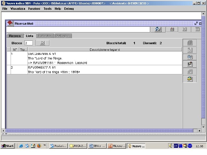 Gruppi di lavoro e ritorno nella Commissione • Gruppo di studio per la catalogazione della musica • La catalogazione delle risorse elettroniche in SBN (manuale d’uso) • Gruppo sulla catalogazione di carte e stampe (adattamento dell’ISBD (CM) e del Cartographic materials: a manual of interpretation of AACR 2 • Manuale per la catalogazione in SBN del materiale video (in corso di ultimazione)