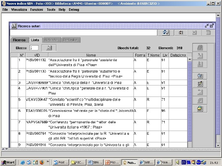 Interfaccia diretta L’attività di AC si svolge integrata nel nuovo Indice SBN, attraverso il client “Interfaccia Diretta” ed è da qui interrogabile da parte dei poli Le registrazioni d’autorità sono strutturate secondo le Direttive GARR