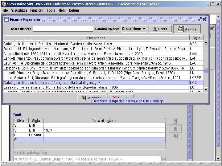 Archivio bibliografico dei repertori Archivio in linea che contiene la descrizione e la sigla dei repertori consultati Ne garantisce l’uniformità di trattamento E’ corretto ed incrementato centralmente La singola voce di repertorio viene gestita come legame