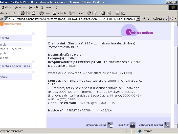 Authority control in SBN Progetto Valorizzazione dell’Indice SBN Aprile 2005 -Ottobre 2007 Creazione di voci di autorità per autori personali italiani dei secoli ‘ 800 e ‘ 900 (BNCR ed ICCU) Sono state create 13. 000 registrazioni di authority, con uno spostamento di 20. 000 titoli Attività di pulizia di collane e titoli uniformi (BNCF)