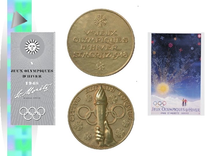 SAINT-MORITZ 1948 Sono presenti: Sport in programma: Sport: Prove: Atleti: nuovo: 28 nazioni 4 Bob, Hockey su ghiaccio, Pattinaggio, Sci 22 669 ( 592 M 77 F) per la seconda volta appare lo skeleton Svizzera