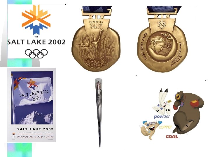 VANCOUVER 2010 • • Canada MIGA è un sea bear, una specie di animale metà orca, metà orso che appartiene alle legende dei popoli del Pacifico Nordovest. La metà orso è anche speciale perché Miga è in parte un orso bianco Kermode, rara specie che abita solo nella costa ovest della British Columbia, questa sara presente negli sport di neve come lo snowbord ed è femmina QUATCHI è il famoso Sasquatch, che abita nelle foreste canadesi e rappresenta il mistero attorno ai boschi immensi e le creature favolose che li abitano, accompagnerà le gare di hockey sul ghiaccio SUMI invece è una specie di sincretismo allo stesso modo dei totem, uno spirito formato da varie parti che fa allusione alla trasformazione e alla connessione fra i mondi del uomo, gli animali e gli spiriti. Il suo nome deriva dalla parola Sumesh che significa spirito guardiano. Sumi ha ali di thunderbird (una poderosa creatura soprannaturale), gambe di orso (forza e amicizia) e un cappello di orca (il viaggiatore e protettore degli oceani) caratterizzera i Giochi Paraolimpici sono i suoi preferiti ma sarà presente in tutti gli sport. MASCOTTES :