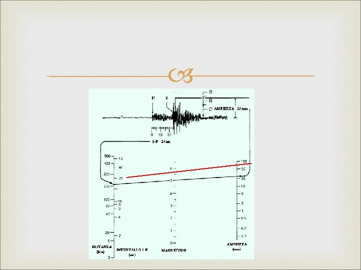 Scala Richter La scala Richter misura invece la Magnitudo, ossia l’energia effettivamente liberata dall’ipocentro di un terremoto. È basata sull’ampiezza massima delle onde sismiche misurate da un sismografo a 100 Km dall’epicentro (A). La scala Richter è inoltre una scala “aperta”, ossia non ha limiti le inferiori ne superiori. È inoltre una scala logaritmica (M = Log 10 A/A 0)