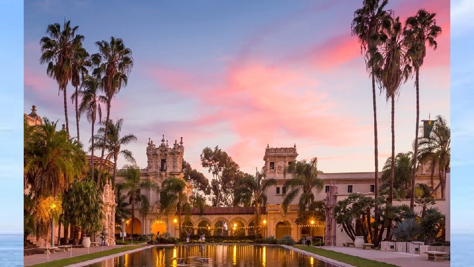 FIN Un survol, principalement sur les magnifiques bâtiments à l’architecture très typique du pays et les ciels flamboyants au couchant, jardins, pelouses et aires de jeux du Parc de BALBOA San Diego. Dans ce parc, il y a encore trop à découvrir et à développer pour tout inclure dans ce diaporama. Photos du Net Diaporama créé par Angèle FIN