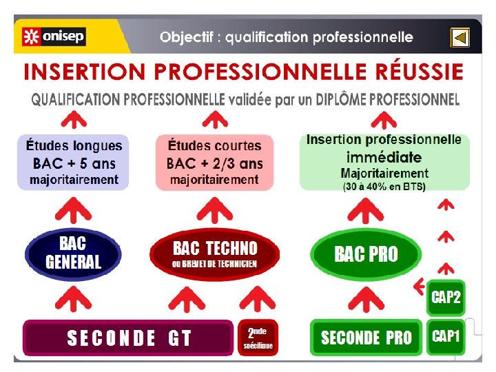 Ø L’objectif est maintenant d’amener 50 % d’une classe d’âge au niveau BTS ou DUT ou licence en apportant des réponses adaptées aux spécificités des 3 voies générale, technologique ou professionnelle