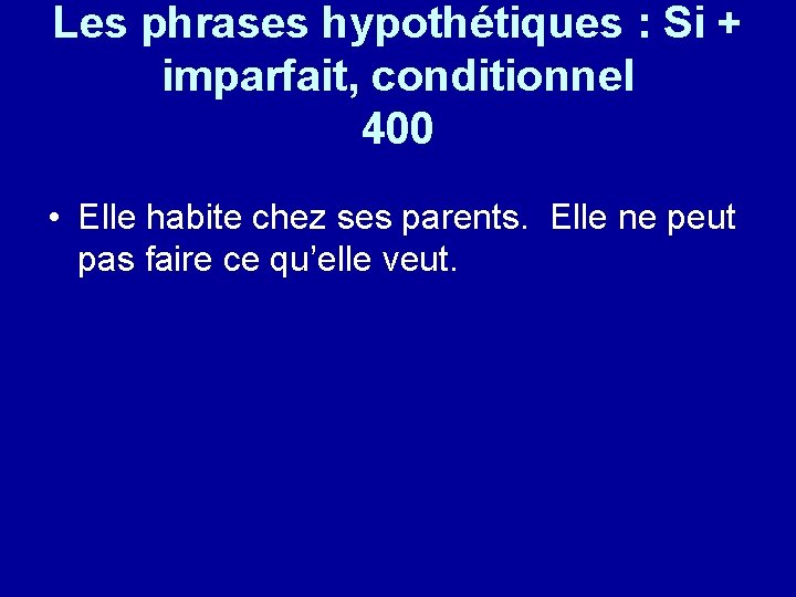 Les phrases hypothétiques : Si + imparfait, conditionnel 400 • Elle habite chez ses parents. Elle ne peut pas faire ce qu’elle veut.