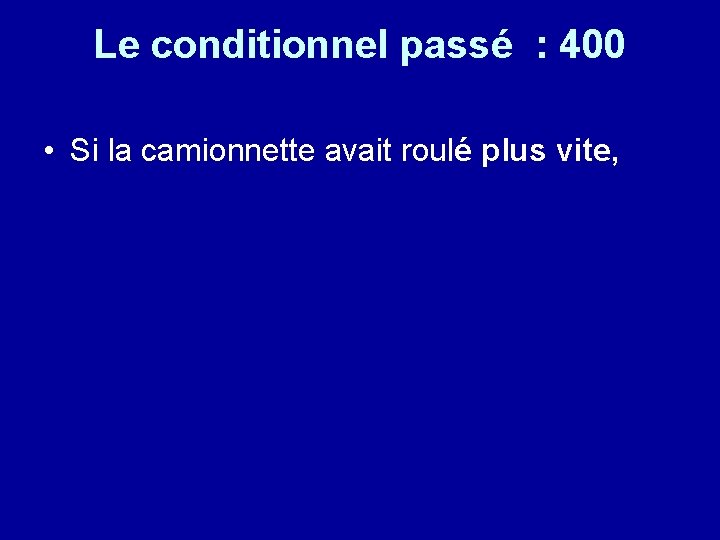 Le conditionnel passé : 400 • Si la camionnette avait roulé plus vite,