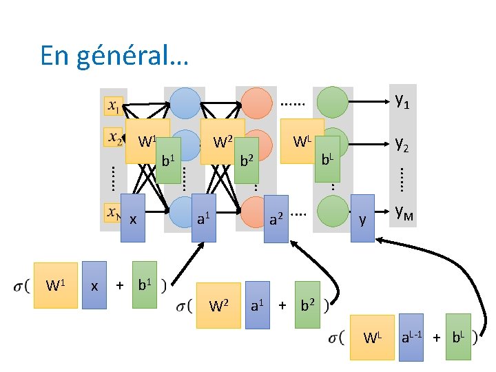 Exemple de calcul neuronal 1 -2 -1 -1 0. 98 4 1 1 0. 12 -2 1 0 Sigmoide Brassage de nombres à répéter pour toutes les
