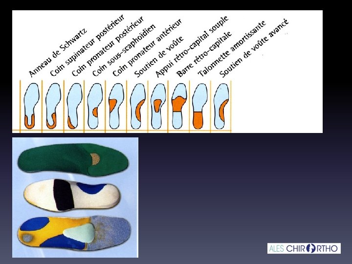 Le port de semelles orthopédique est indiqué dans la plupart des cas Soutien de la voute plantaire Coin talonnier