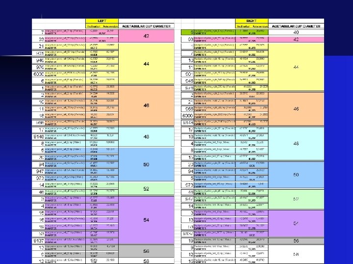 Série récente de 102 cotyles à double mobilité Réunion de travail Stryker 11/03/2005 - Paris R. Béracassat Etude sur File. Maker database d’après Fiche de Ritter & Keating