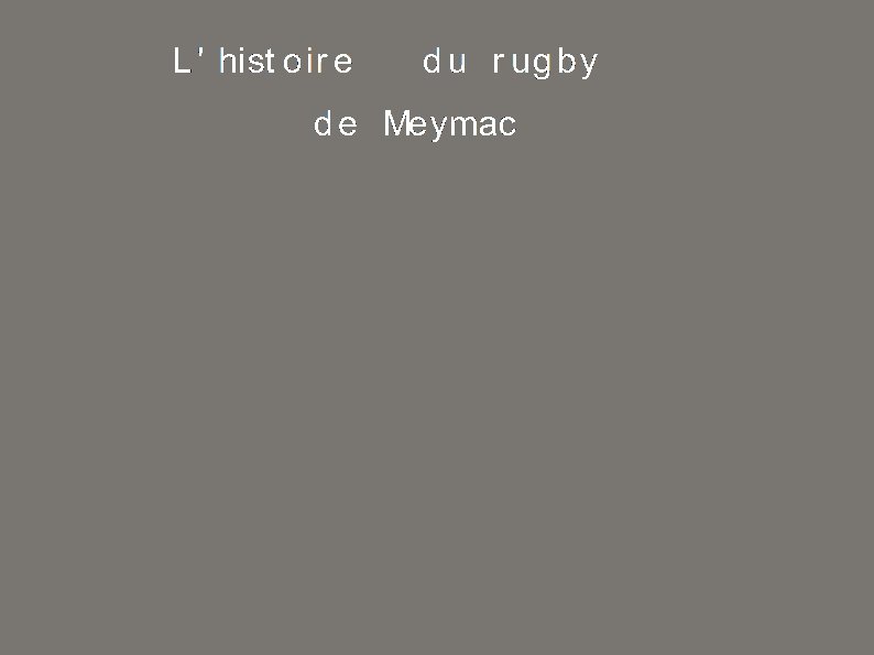 L'histoire de Meymac Le rugby meymacois a cent ans. Cela représente différentes humeurs, différents projets, des repas entre amis. . . Certes le club a quelques fois été interrompu, mais ce ne peut qu'être vingt ans de passion, et, le rugby ne peut se vivre sans passion. Le simple match du dimanche, ou une simple réunion en est le reflet. Cent ans de rugby, c'est aussi cent ans de mêlée, de pénalités, de plaquages. . . Cent ans de rugby, c'est cent ans d'histoires d'hommes.