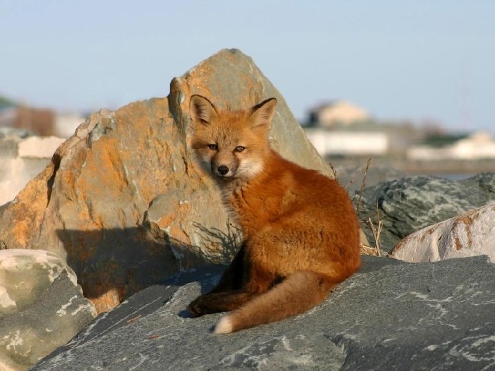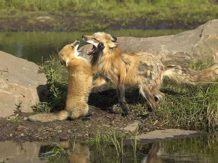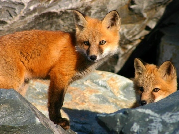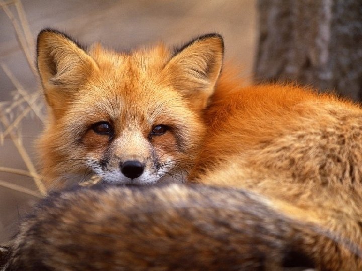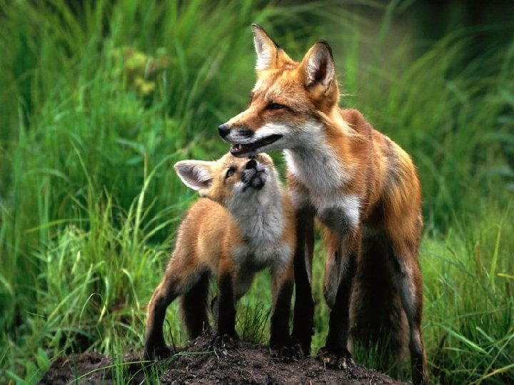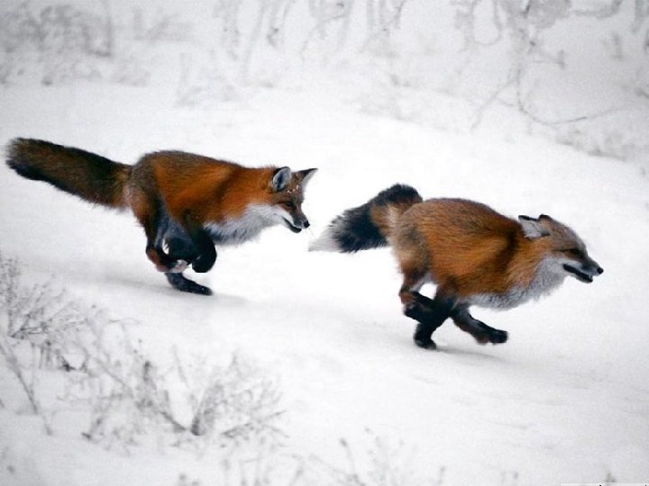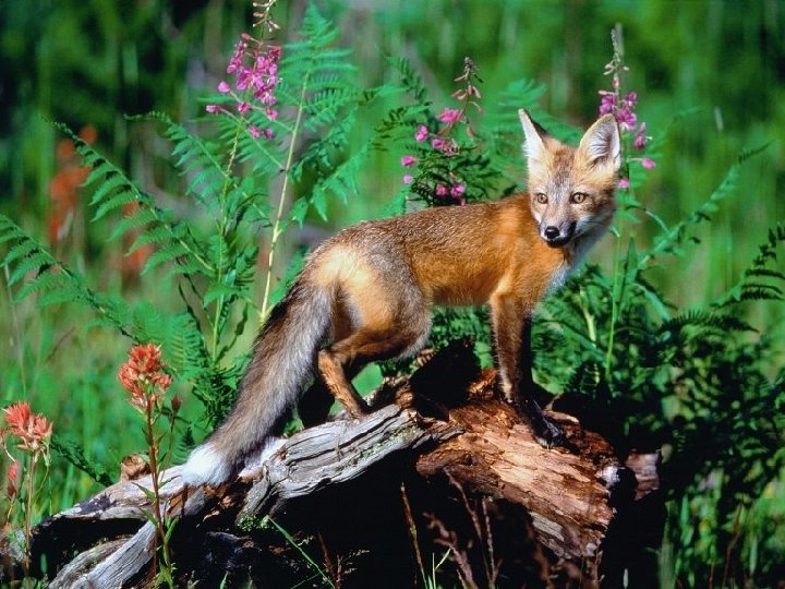 Le Renard Le renard fait parti de la famille des canidés, groupe de mammifères carnivores. Le renard glapit et a une longévité de 8 à 10 ans. Les renards ont des pattes courtes, un museau étroit et allongé, des oreilles dressées et triangulaires, une épaisse fourrure et une longue queue touffue. On les rencontre en Europe, en Asie, en Amérique et en Afrique; ils habitent surtout la forêt, la brousse et les déserts. La plupart des dix espèces du genre auquel appartient le renard roux peuvent s'adapter à des climats et à des habitats variés. La plupart des renards se nourrissent de souris, de campagnols, de lapins, d'œufs d'oiseaux, de fruits, de grands insectes et de charognes. Leurs proies étant petites, ils chassent en solitaire et non en bande. Leur territoire de chasse dépasse rarement 8 km 2 et ils le défendent contre les autres renards. Ils sont rapides et agiles; le renard roux peut atteindre 48 km/h. Retrouver mes diaporamas sur le Site internet http: //parcomil. jimdo. com/ Parcomil Production