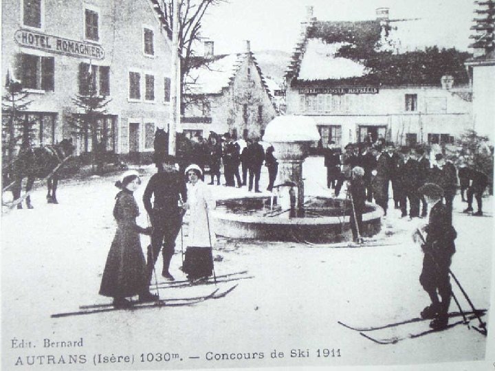 Les chasseurs alpins, de retour de l’armée, ont appris le ski aux habitants de leurs villages avec des techniques diverses. Ski à un bâton Le télémark