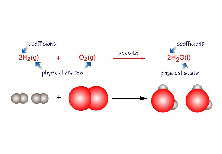 specie che si riduce (ossidante) Reazioni ossido-riduzione specie che si ossida (riducente) e- Zn(s) + 2 HCl(aq) Zn. Cl 2(aq) + H 2(g) Reazioni di sintesi : 2 H 2(g) + O 2(g) 2 H 2 O(l) Reazioni di decomposizione (termica): (termica) Ca. CO 3(s) Ca. O(s) + CO 2(g) Reazioni di combustione : CH 4(g) + 2 O 2(g) CO 2(g) + H 2 O(g)