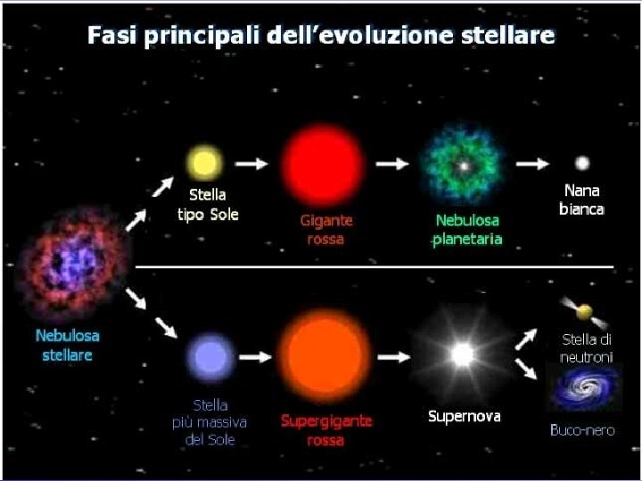 Esiste l’evoluzione dell’uomo e l’evoluzione delle specie ma…esiste un’evoluzione anche per le stelle? Stelle in formazione all’interno della nebulosa dell’Aquila Stella in fase stabile Gigante rossa Nebulosa di Orione Esplosione di una supernova Residui di una supernova