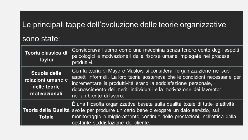 ORGANIZZAZIONE DELLE AZIENDE SANITARIE • Le organizzazioni aziendali si ispirano ai modelli organizzativi ( costruzioni teoriche stabiliscono le modalità con cui devono essere regolati i rapporti tra i lavoratori) • vi sono modelli diversi: 1. GERARCHICO dove le decisioni partono dal vertice e scendono da livello fino alla base per cui ogni persona riceve direttive dal suo diretto superiore (TOP-DOWN) 2. BASATO SULLA DIVISIONE DEL LAVORO E LA SPECIALIZZAZIONE DELLE FUNZIONI dove i dipendenti applicano procedure standardizzate per eseguire in modo programmato e in un tempo minimo le attività affidate 3. ORGANIZZAZIONI CHE PONGONO ACCENTO SULLE RELAZIONI UMANE come dovrebbero essere le aziende socio sanitarie dove il grado di soddisfazione che deriva dalla stima dei colleghi e dei dirigenti favorisce il lavoro di squadra e il raggiungimento del fine sociale