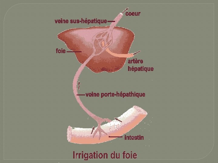 suite � Le système porte fonctionne parallèlement à la circulation systémique, ou grande circulation, qui distribue le sang oxygéné à tout l'organisme, sauf aux poumons. La quasi-totalité du sang veineux provenant de l'appareil digestif (estomac, intestin grêle, côlon, pancréas) et de la rate arrive dans le foie par la volumineuse veine porte. Celle-ci se ramifie en une multitude de branches aboutissant à de petits vaisseaux intra-hépatiques. Le sang ainsi transporté est épuré par le foie d'un grand nombre de substances et repart vers la veine cave inférieure par les veines sus-hépatiques.