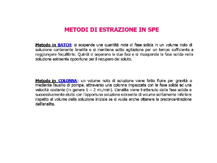 Le tecniche cromatografiche permettono la separazione e quantificazione dei componenti di matrici complesse e trovano quindi numerosissime applicazioni in campo alimentare. Nei metodi cromatografici i componenti di una miscela si separano distribuendosi tra due fasi: una fase stazionaria (un solido o un liquido su supporto solido inerte) una fase mobile (gas o liquido) che fluisce in modo continuo su quella stazionaria. La separazione è dovuta principalmente alle relative affinità per la fase stazionaria. Nella cromatografia liquida (LC) la fase mobile è un liquido, nella gas cromatografia (GC) la fase mobile è un gas. 14
