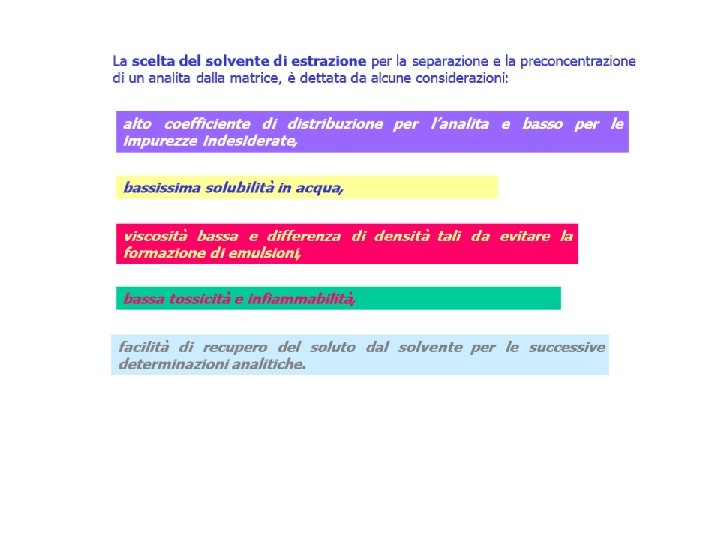 Eluente La fase eluente deve contenere elettroliti forti, composti ionici completamente dissociati, in grado di competere con gli analiti nello scambio con la resina. Gli analiti vengono eluiti più velocemente quanto più è alta la concentrazione di competitori. Può contenere solventi organici (CH 3 CN, Me. OH, ecc. ) per evitare l’adsorbimento per interazione idrofobica su resina o gruppi funzionali di analiti organici Se rimane costante durante tutta l’analisi -> Eluizione Isocratica Se cambia di composizione durante l’analisi -> Gradiente di Eluizione Forza Ionica p. H Concentrazione dei costituenti Il gradiente si può comporre: | sotto pressione con una pompa per ogni componente (più riproducibile ma strumentazione più costosa) | non sotto pressione con l’ausilio di un miscelatore posto prima della pompa