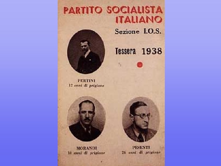 GLI ANNI DELLA GUERRA E DELLA REPRESSIONE FASCISTA negli anni 1940 – 1941 – 1942 – 1943 il Partito non emise tessere ……………………………. . ………………………