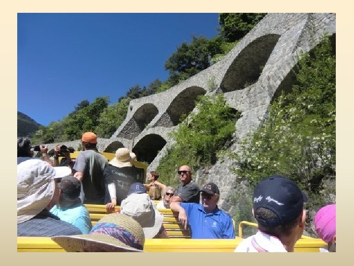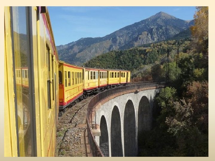 Le Train Jaune, une prouesse technique. Les premiers travaux entrepris en 1903 permirent dès 1910, de relier Villefranche -de-Conflent à Mont-Louis. La ligne définitive ne sera achevée qu’en 1927 en atteignant Latour-de-Carol. Pour construire cette voie, ce n’est pas moins de six cent cinquante ouvrages d’art qui ont été édifiés, dont dix-neuf tunnels et deux ponts remarquables : le Viaduc Séjourné et le Pont suspendu Gisclard (à 65 mètres au-dessus du sol) afin que le Train Jaune s’intègre parfaitement au relief qu’il parcourt. Aujourd’hui, le Train Jaune, a une véritable vocation touristique et transporte 400 000 passagers par an. Cette ligne ferroviaire, longue de soixante-trois kilomètres, dessert vingt-deux gares dont celle de Bolquère qui culmine à 1 596 mètres, ce qui en fait le plus haut chemin de fer à voie métrique de France. Ainsi, c’est avec une allure maximale de 55 kilomètres par heure, que le Train Jaune passe d’une altitude de 427 mètres à 1 231 mètres Le train fonctionne grâce a un système de traction électrique. L’électricité est apportée par le ≪ troisième rail ≫, un rail latéral à la voie de roulement. Le barrage des Bouillouses et l’usine hydroélectrique de La Cassagne, entre Fontpedrouse et Mont-Louis, ont été construits et mis en service en 1910 afin de permettre l’électrification du Train Jaune.