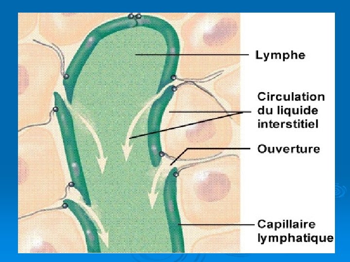 L’HOMÉOSTASIE – Circulation lymphatique • 1. 2. 3. Communication continue entre: Plasma sanguin liquide interstitiel Lymphe • Résultat: État de stabilité continue. Il faut maintenir un équilibre dans la concentration en eau dans le liquide interstitiel et dans le sang.