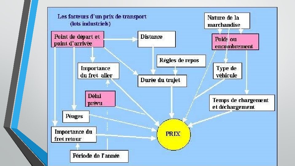 Capacité de chargement des modes de transport • Routier : camion + semi remorque = 25 tonnes • Aérien : 747 = 100 tonnes • Ferroviaire : 1500 à 2000 tonnes • Fluvial : 250 à 4000 tonnes • Maritime : super pétrolier 320 000 tonnes Porte container = 5000 à 14000 containers de 30 t