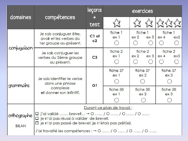 Pour la conjugaison et la grammaire, vous retrouverez à chaque fois les compétences.