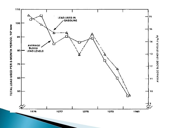 Other Correlations with Elevated Blood Lead Levels Effect of blood lead levels on IQ -for every 10 mcg/d. L rise in BLL, there is a decrement of 6 IQ points* - estimate of 23 million IQ points lost in a 6 year cohort of children** Correlations have been reported about violent behavior in young adults and childhood exposure to lead*** *Policy Statement – Prevention of Childhood Lead Toxicity. Pediatrics V 138: 1, July 2016 **Bellinger, DC A Strategy for comparing contributions of environmental chemicals and other risk factors to neuraldevelopment of children. Environ Health Perspect 2012: 20(4): 501 -507. ***Stretsky, PB and Lunch, MJ The relationship between Lead Exposure and Homicide. Arch Ped Adol Med 2001; 155: 579 -82 Reyes, JW Environmental Policy as Social Policy? The impact of childhood lead exposure on crime. BE J Econ Anal Policy 2007; 7(1) 1 -41